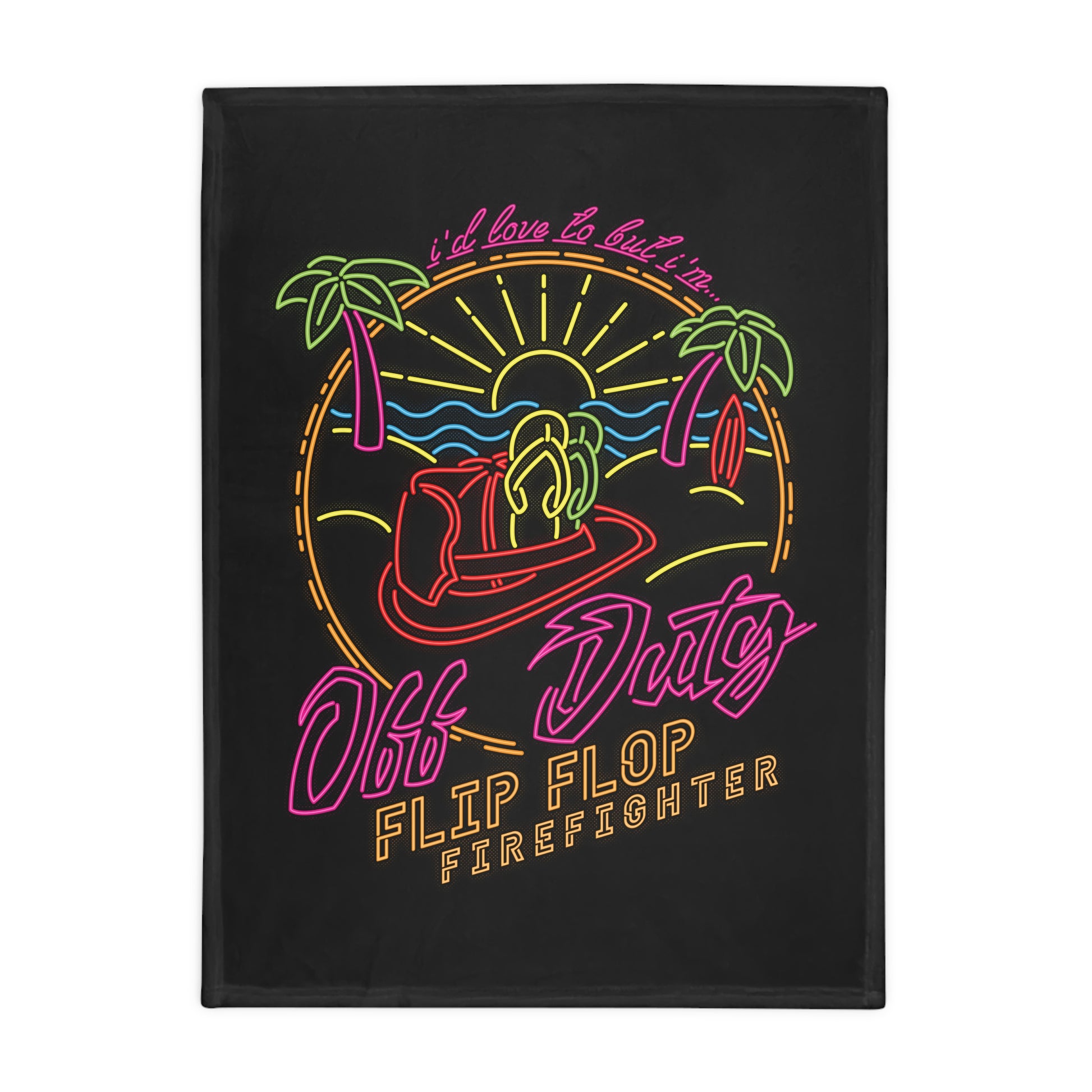 Kick back in comfort with the ultimate off-duty essential. The Flip Flop Firefighter Plush Fleece Blanket. Whether you're chilling after a long shift, lounging at the station, or soaking up beach vibes, this blanket brings the perfect mix of cozy warmth and bold personality. Featuring a vibrant tropical design with eye-catching colors, it adds instant chill factor to any space, from the couch to the crew bunk room.